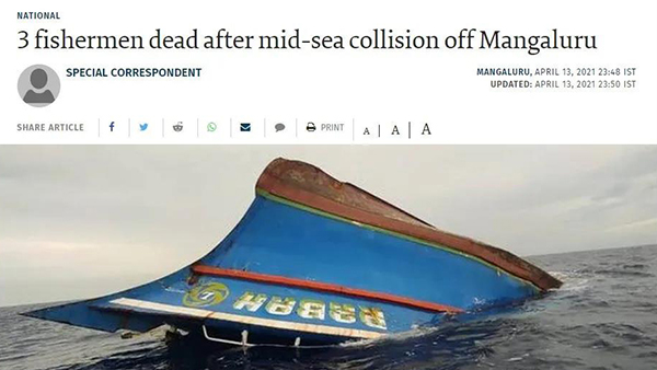 據(jù)有關(guān)報(bào)道顯示,一艘印度漁船“Rabbal”號(hào)(或“Rabbah”號(hào))于當(dāng)?shù)貢r(shí)間4月12日午夜左右與一艘集裝箱船發(fā)生碰撞事故,漁船在印度西南卡納卡州Mangaluru約42海里處沉沒。