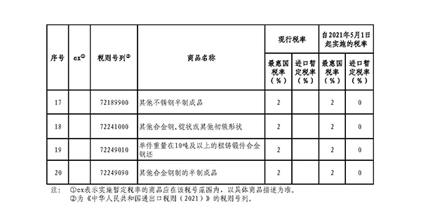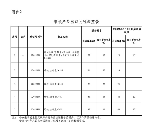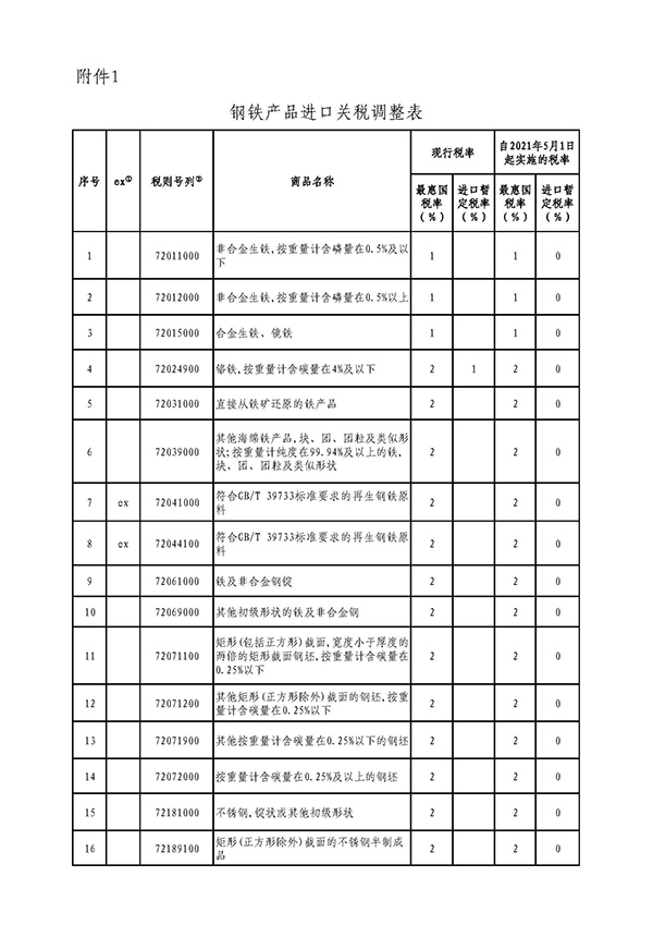調(diào)整部分鋼鐵產(chǎn)品進(jìn)出口關(guān)稅