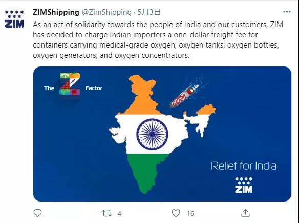 以星對所有運(yùn)往印度的醫(yī)療物資免收海運(yùn)費(fèi),僅象征性收1美元海運(yùn)費(fèi)。