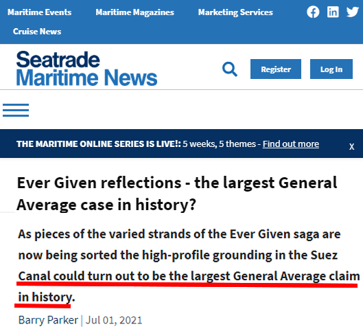因?yàn)?span lang="EN-US">4月1日,長(zhǎng)賜號(hào)的日本船東正榮汽船正式宣布共同海損。
