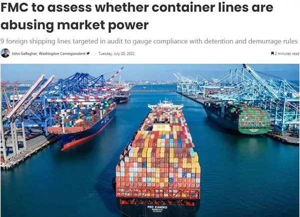 美國聯(lián)邦海事委員會(FMC)日前告知在美國經(jīng)營業(yè)務(wù)的9家最大的集裝箱船公司,在托運人、國會和白宮施加壓力的情況下,該機構(gòu)將立即開始審計他們?nèi)绾蜗蚩蛻羰杖滟M和滯港費,以及與持續(xù)的港口擁堵相關(guān)的不合理倉儲費。