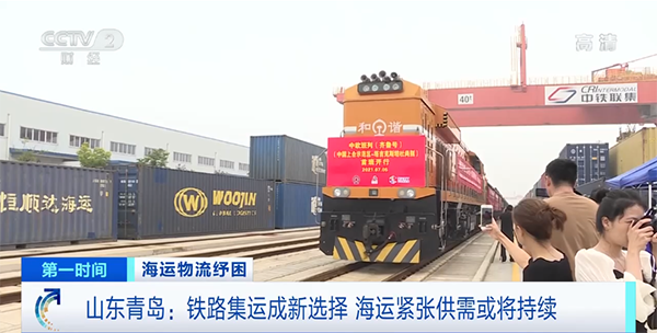 山東青島:鐵路集運成新選擇 海運緊張供需或?qū)⒊掷m(xù)